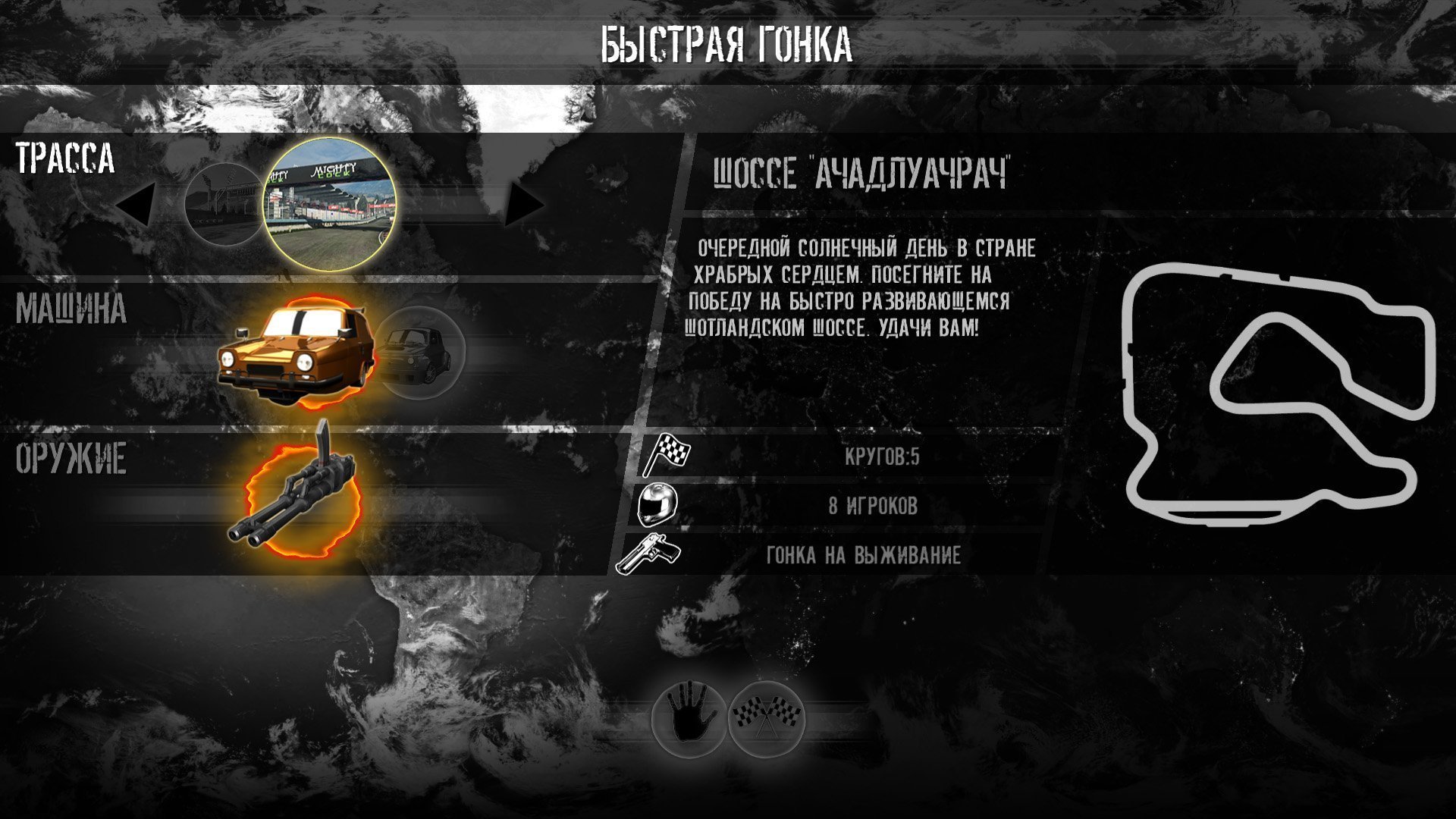Описание:Таких сверхскоростных гонок еще никому не доводилось видеть. А чем быстрее заезд, тем яростнее соперники относятся друг к другу. Все это лично сможет ощутить на себе геймер в процессе прохождения компьютерного симулятора. На трассе пройдет не обычная гонка, а настоящее сражение за победу. В любой момент с участниками может произойти что-то трагическое, способное навсегда вывести его из соревнования. Так что нужно быть предельно аккуратным, чтобы не попасть в число неудачников, не сумевших справиться с управлением скоростным автомобилем. Чтобы победить, игроку следует выбрать хорошую машину, которая не подведет его на дороге. В симуляторе представлено огромное количество интересных моделей, обладающих собственными особенностями. Также стоит заранее запастить оружием, которое позволит защитить себя в случае нападения коварного соперника. За каждый заезд геймер получит определенное количество денег. Заработанные средства стоит потратить на модернизацию любимого автомобиля, которому предстоит победить еще во многих быстрых заездах. Помимо этого, необходимо развивать боевые навыки персонажа, чтобы тот имел возможность противостоять даже самым сильным противникам.